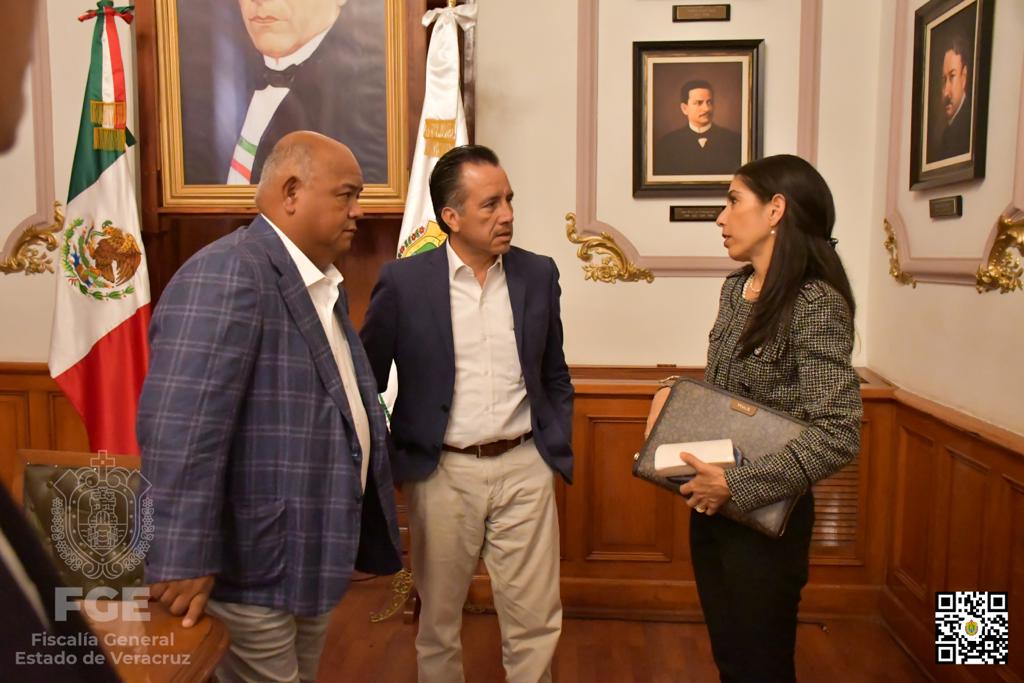 En la mesa encabezada por el Gobernador Cuitláhuac García Jiménez, informó que la Unidad Especializada en Combate al Secuestro, obtuvo de un juez de control de proceso y procedimiento penal oral del distrito judicial de Orizaba, imputación en contra de Benito “N”, Paulino “N” y Simón “N”, policías estatales en activo, como presuntos responsables del delito de secuestro agravado cometido en agravio de las víctimas con iniciales F.L.A y O.L.A., hechos suscitados en el municipio de Camerino Z. Mendoza el pasado día 25 del presente mes y año. El Juez impuso la medida cautelar de prisión preventiva oficiosa por el término de dos años, dentro del proceso penal 249/2022; en colaboración con la UECS Oaxaca, cumplimentó en Coatzacoalcos, orden de aprehensión en contra de Carlos “N”, prófugo desde el año 2012, por los presuntos delitos de secuestro y trata de personas en agravio de una mujer de identidad resguardada en el estado de Oaxaca, hechos asentados dentro del Proceso Penal 198/20212.