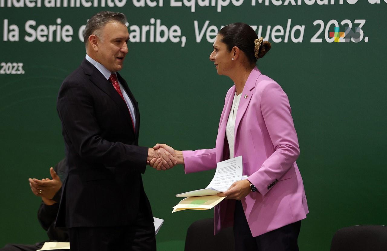 “Hoy le damos la bienvenida a este seleccionado mexicano que tendrá el orgullo de representarnos en Venezuela en la Serie del Caribe en su edición 2023. Es para nosotros un motivo de orgullo cada vez que hacemos esta ceremonia y saber que van con la ilusión de refrendar los colores de México, de hacer su mejor papel en un evento que de por sí es una tradición para nuestro país”, comentó.