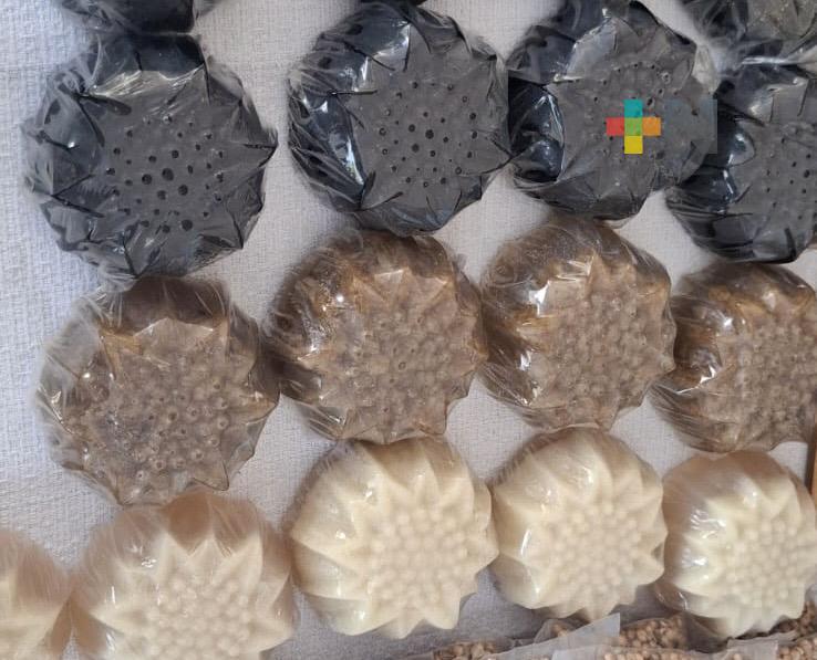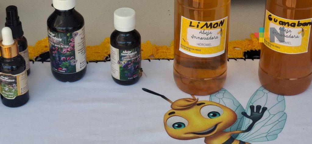 Delfina Suárez Alarcón, poductora de Úrsulo Galván, destaca: “Ofrecemos jabones artesanales con miel, alegrías de amaranto, repelentes naturales, pomadas y extractos con cúrcuma, jengibre y miel, ideales para las vías respiratorias.”