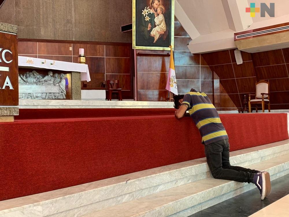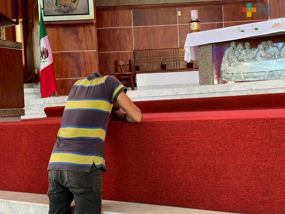 Coatzacoalcos, Ver.- Una familia de migrantes hondureños acudieron a la catedral de San José de Coatzacoalcos para encomendarse a la Virgen de Guadalupe y los guarde en su viaje por el territorio mexicano.