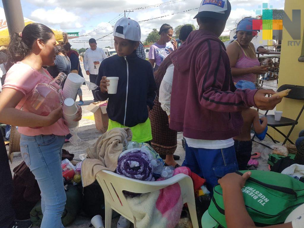 Por su parte, los grupos humanitarios, religiosos principalmente, voluntarios de Cruz Roja, así como servicios de Salud del Gobierno estatal, les brindan ayuda, sobre todo al gran número de niños que viajan en esta caravana.