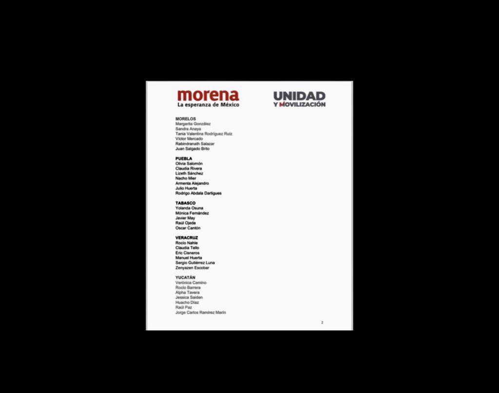 Xalapa, Ver.- El Comité Ejecutivo Nacional de Morena dio a conocer los nombres de las y los aspirantes que pasarán a la encuesta final en el marco del proceso de definición de las Coordinaciones de Defensa de la Transformación en CDMX, Chiapas, Guanajuato, Jalisco, Morelos, Puebla, Tabasco, Veracruz y Yucatán.