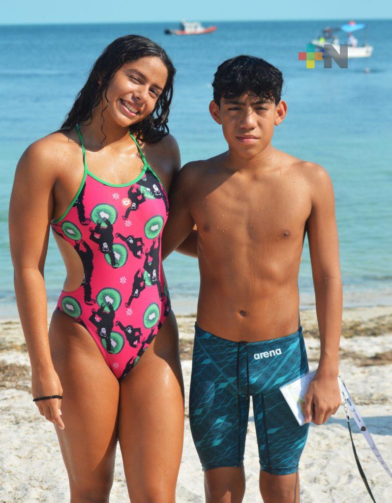 Lerma. Campeche.- Los nadadores veracruzanos Marisela Escobar Falcón y Leonardo Yopihua Andrade, afirmaron que se encuentran motivados para buscar el podio en los Nacionales CONADE 2024 en la disciplina de aguas abiertas, deporte en donde lograron calificar al Mundial que se efectuará del 6 al 8 de septiembre en Alghero, Italia.