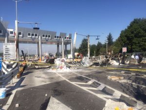 El personal de Caminos y Puentes Federales que trabaja en la caseta de peaje fue reportado a salvo, mientras que, producto del estallido de la unidad, se dañaron los sensores, cámaras de la caseta de cobro y asfalto, sin causar daños a terceros ni a otros automóviles.