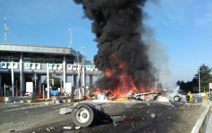 Ocoyoacac, México.- La volcadura de un tráiler esta mañana que transportaba productos químicos, dejó como saldo el conductor muerto y daños materiales en la caseta de la autopista La Marquesa-Toluca, en dirección a la capital mexiquense.