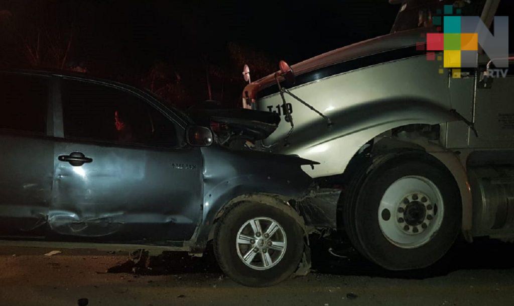 Coatzacoalcos, Ver.- La noche de este jueves, falleció un joven que conducía una camioneta, luego de impactarse contra un trailer en la carretera Coatzacoalcos-Minatitlán por la zona de Canticas. Fue alrededor de las 22:00 horas, cuando un joven identificado como José Manuel de 20 años, quien conducía un Toyota Hilux, color gris, con placas de Veracruz, invadió el carril de un tráiler que iba de Coatzacoalcos hacia Minatitlán, lo que provocó que se impactaran.