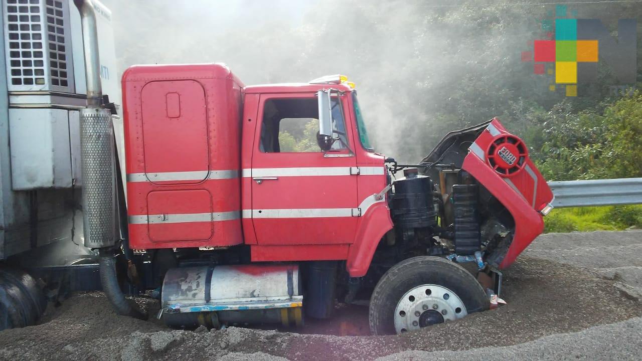 El primer accidente se registró cuando un tráiler se quedó sin frenos al descender de las cumbres en el kilómetro 234 y volcara.