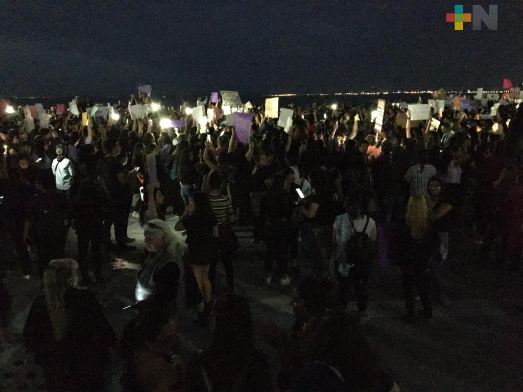 Mujeres se manifestaron a oscuras en Boca del Río, ayuntamiento lamenta falla técnica