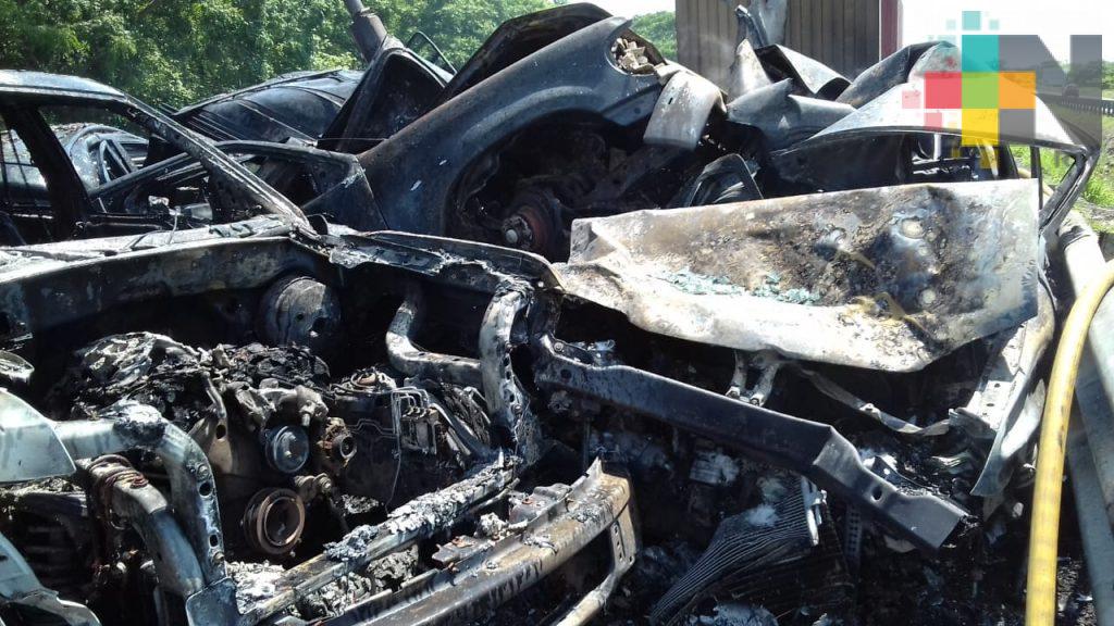 El accidente ocurrió en el kilómetro 20+900, donde personal de bomberos, pertenecientes a los municipios de Cosoleacaque, Minatitlán y Acayucan sofocaron las llamas.