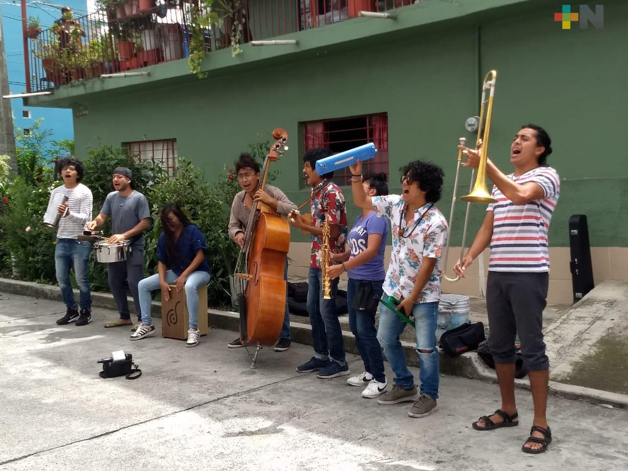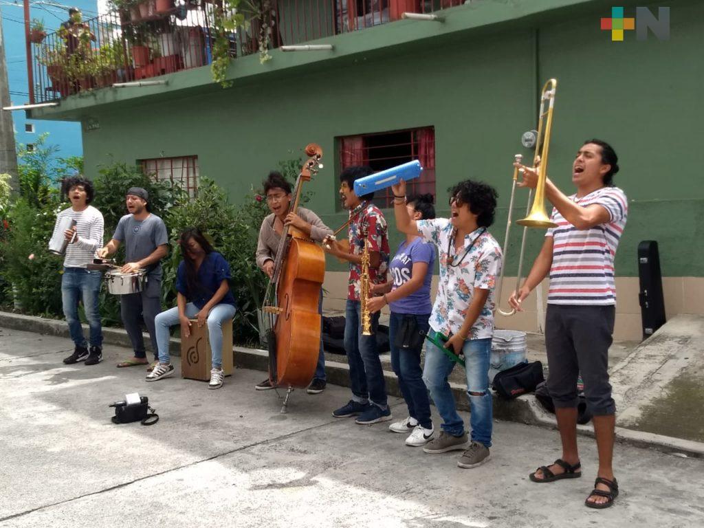 Xalapa, Ver.- La cumbia de «La Cachimba», un ensamble formado por jóvenes músicos en Xalapa ha sido un aliciente y motivo de alegría para varias personas en esta capital durante lo que va de la cuarentena.