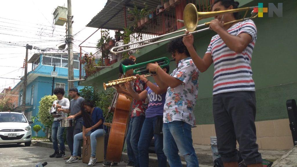 Músicos de Xalapa alegran el confinamiento desde las calles