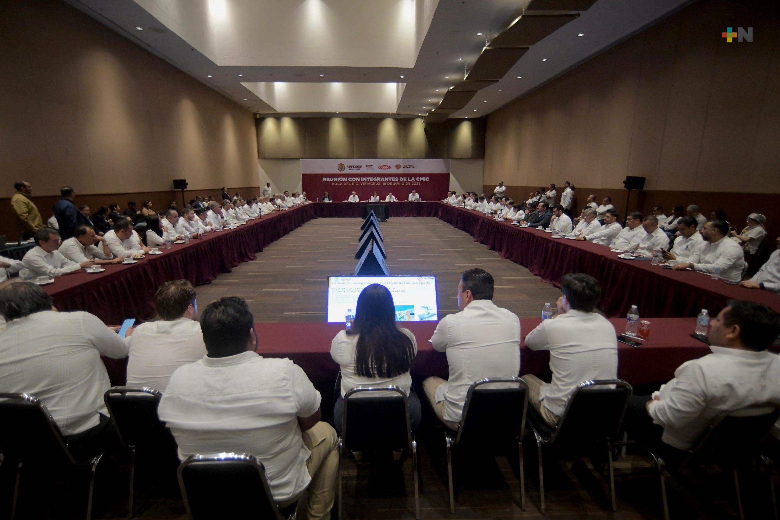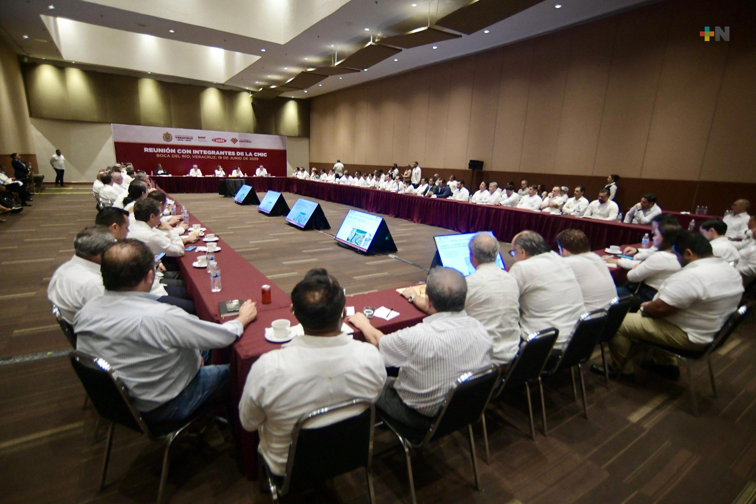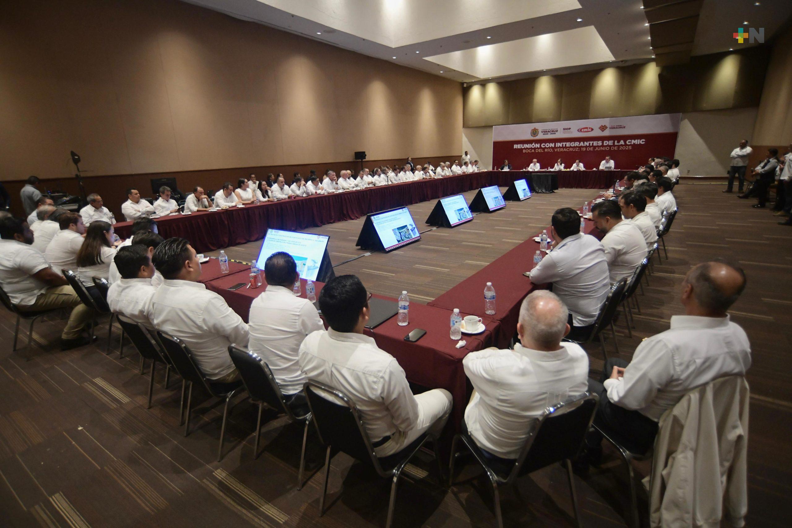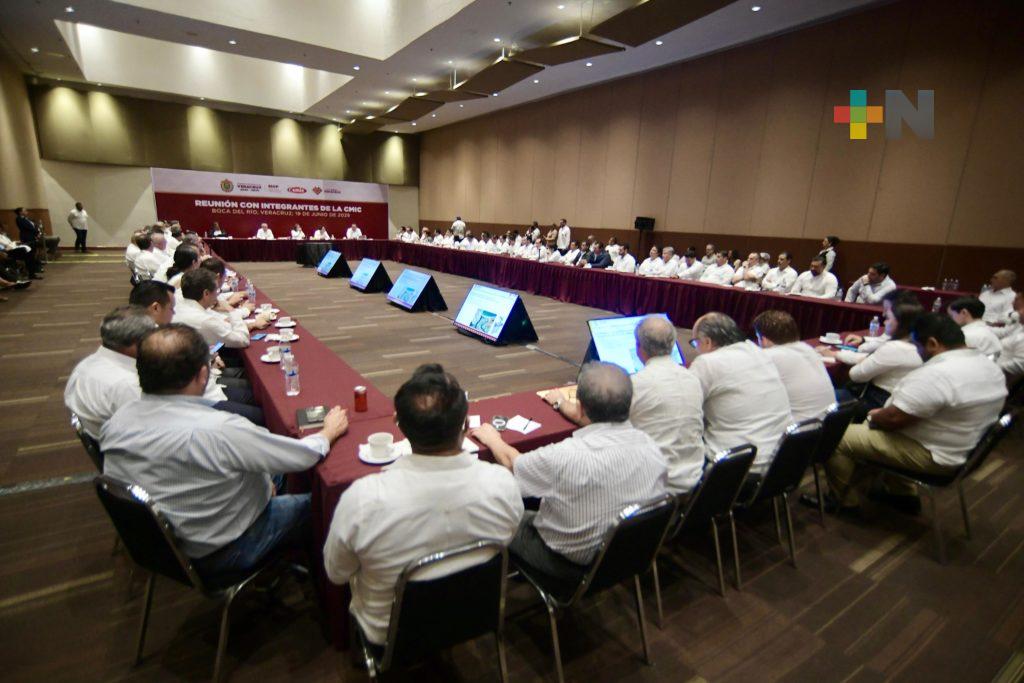 Boca del Río, Ver.- La gobernadora Rocío Nahle García sostuvo un encuentro con integrantes de la Cámara Mexicana de la Industria de la Construcción (CMIC), delegación centro, para presentar el paquete de obras públicas que serán ejecutadas con el objetivo de fortalecer la economía local, generar empleo y asegurar que la inversión se quede en Veracruz.