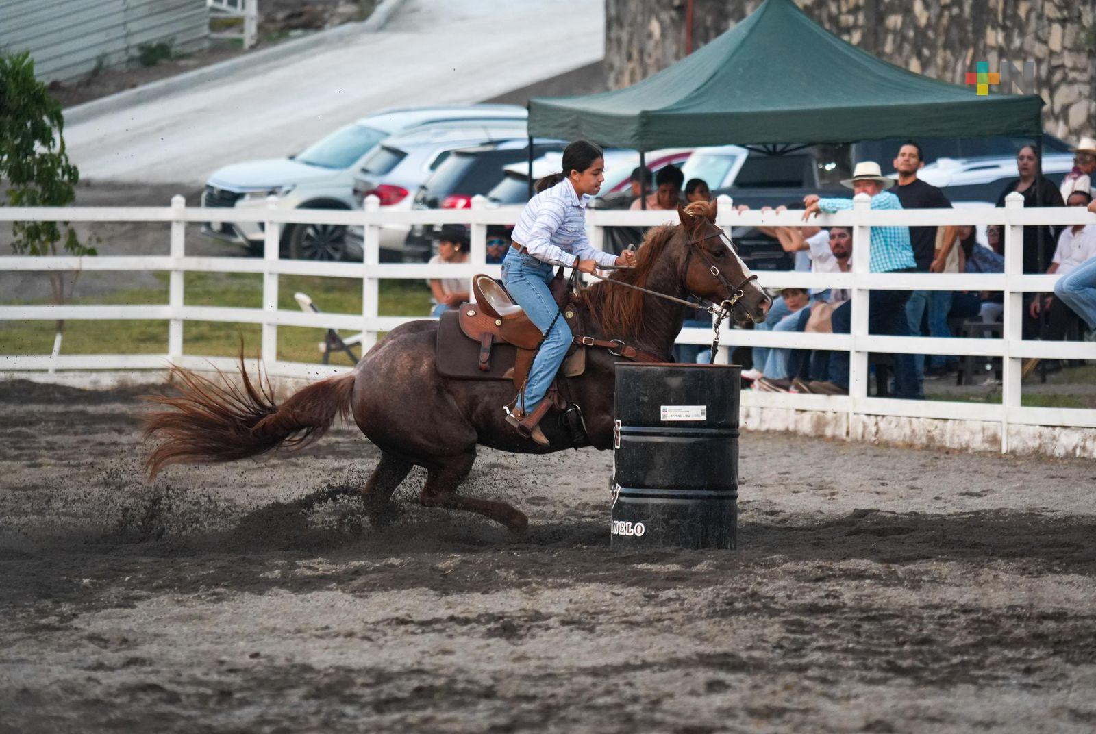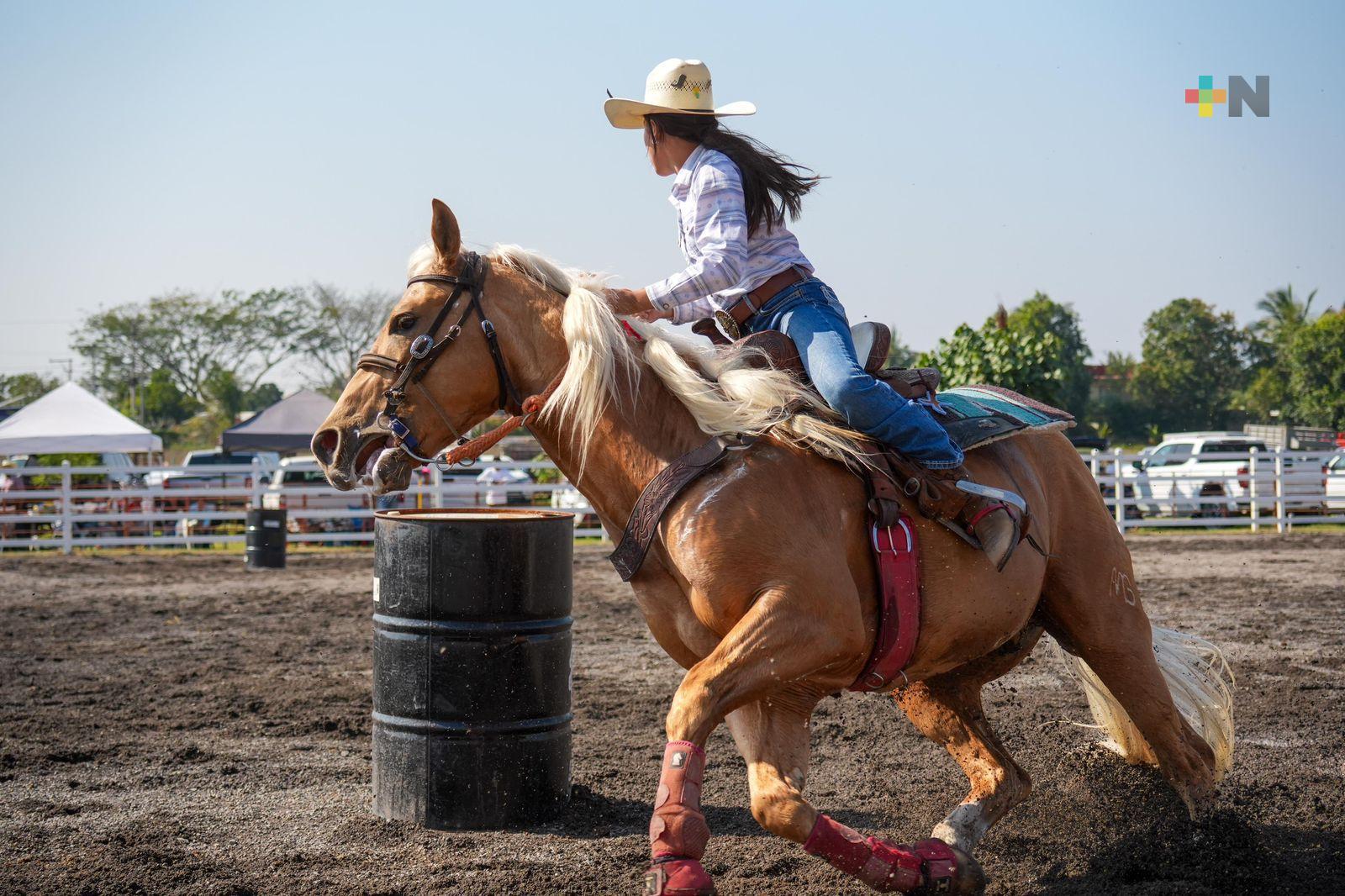 Niñas jinetes representan a Veracruz en carreras de barriles dentro del rodeo