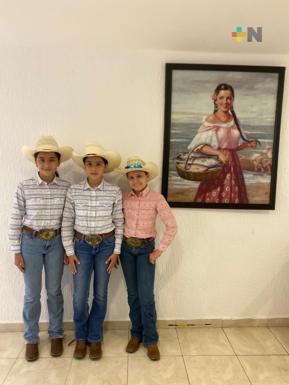 Veracruz, Ver.- Aprendieron a montar casi al mismo tiempo que a caminar. Mariel, Marina y Silvia Gasparina Mayora, hermanas de 10 y 11 años, representan a Veracruz en carreras de barriles dentro del rodeo.