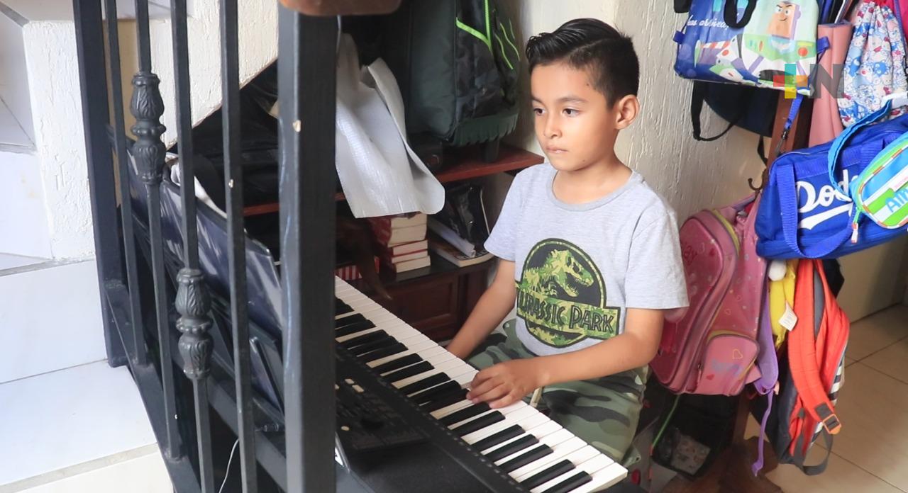 Como a cualquier niño de su edad, a Thiago le gusta correr, jugar, pero demuestra sus habilidades en cada disciplina que practica, como natación, fútbol, canto o tocar un instrumento como el piano.