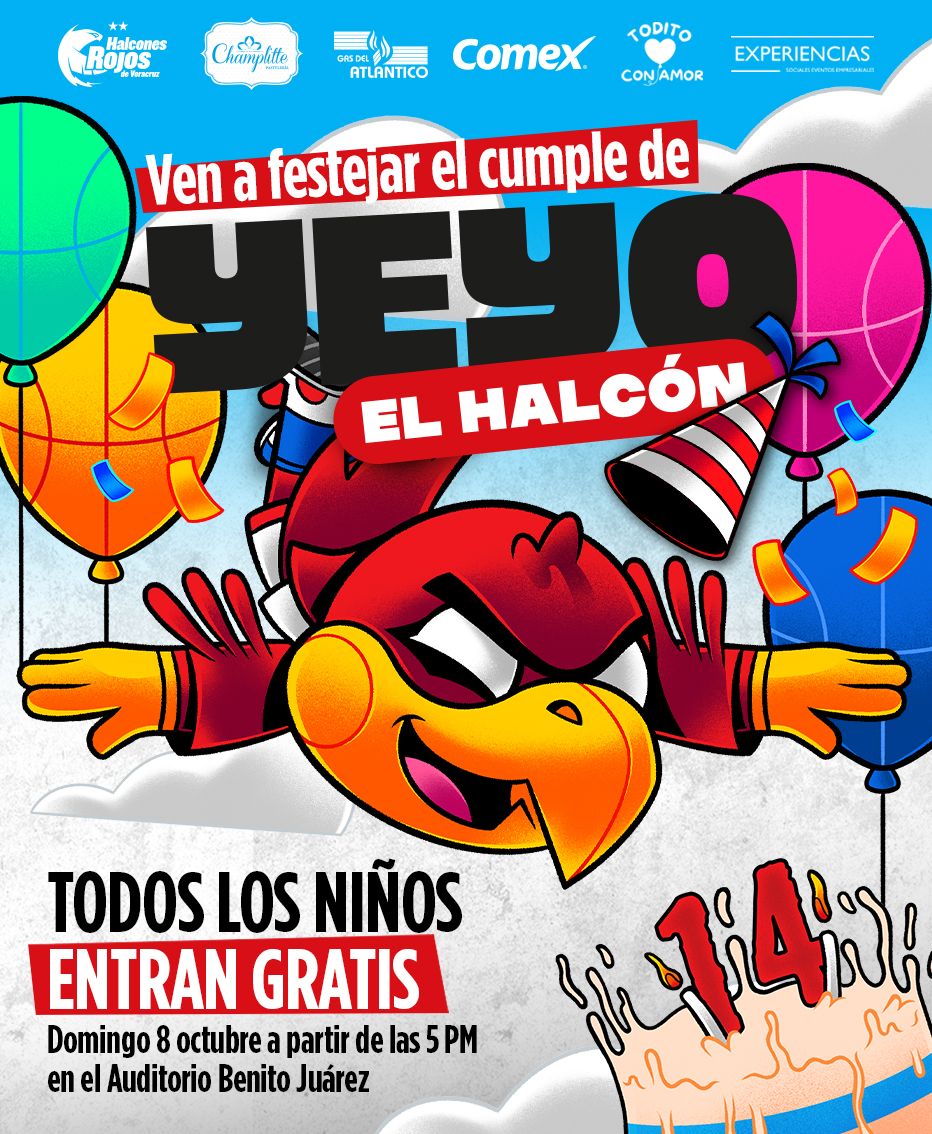 En honor al cumpleaños número 14 de Yeyo El Halcón, la icónica mascota del equipo, los Halcones Rojos invitan a todos los niños a unirse a la fiesta y disfrutar de sorpresas emocionantes durante la próxima serie contra Soles de Mexicali.