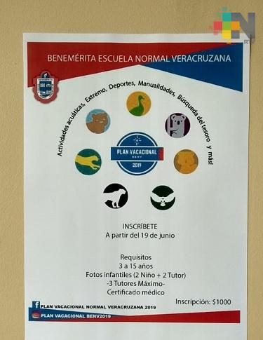 Xalapa, Ver.- Con un esquema de fortalecimiento pedagógico y desarrollo docente, la Benemérita Escuela Normal Veracruzana (BENV) dio a conocer su programa vacacional dirigido a siete grupos, donde tendrán talleres y actividades de la institución.