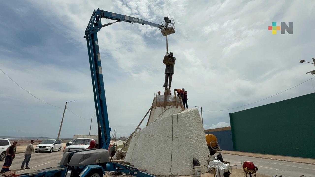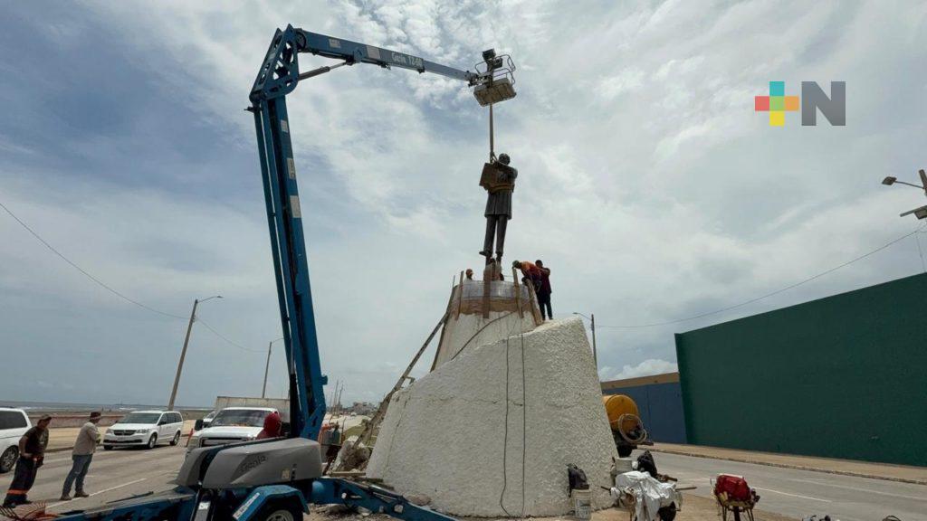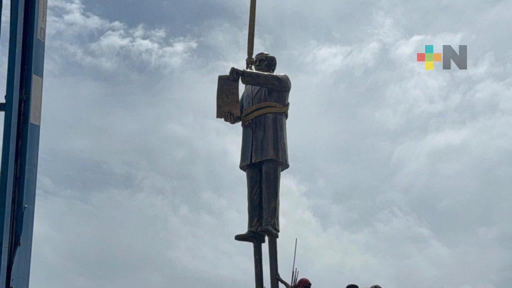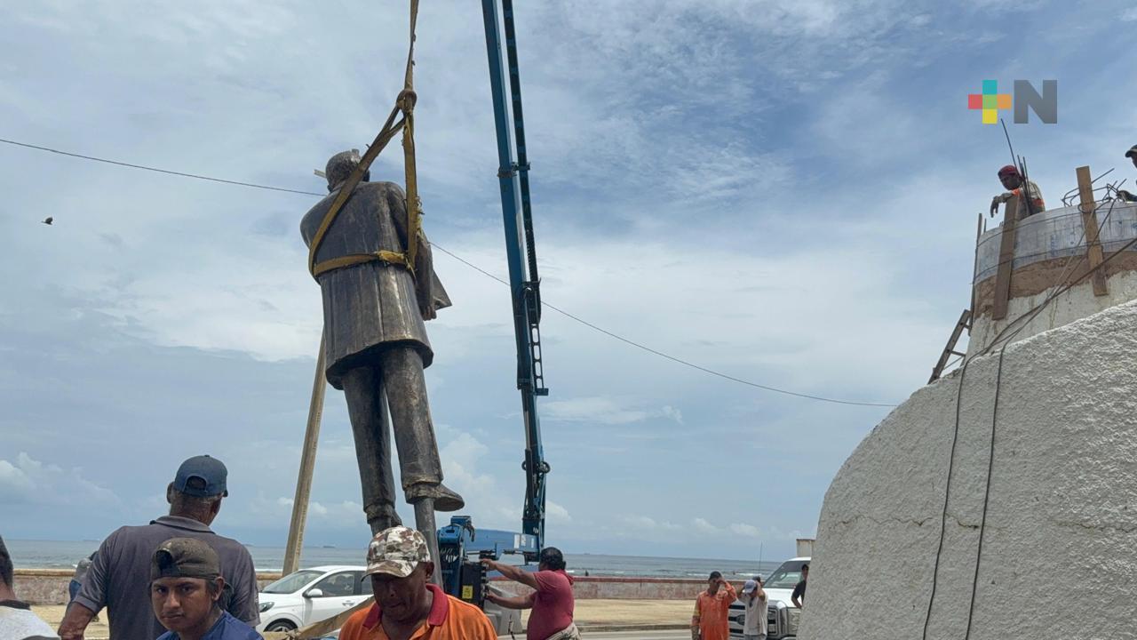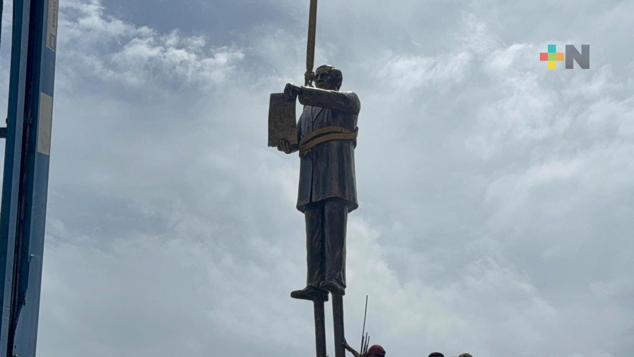Colocan nueva estatua de Benito Juárez en malecón costero de Coatza