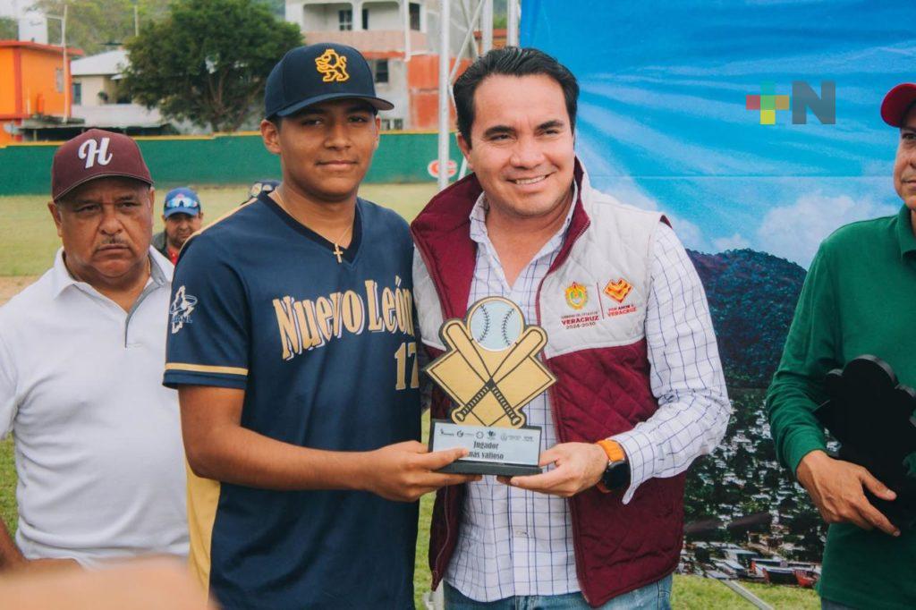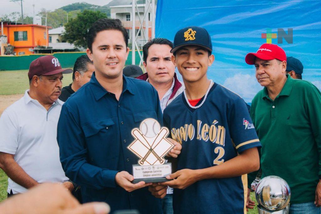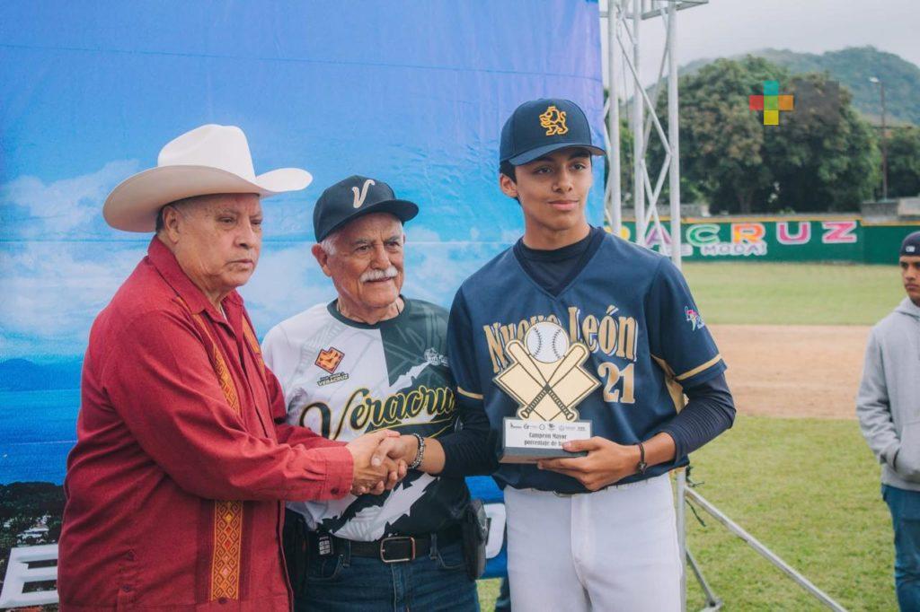 Catemaco, Ver.- Nuevo León logró el Campeonato Nacional de Beisbol Sub-15 al vencer 5-1 a Sinaloa en el juego final del certamen celebrado este sábado en Catemaco, tras realizarse el evento durante toda la semana desde el pasado sábado 15 a este sábado 22 de febrero.