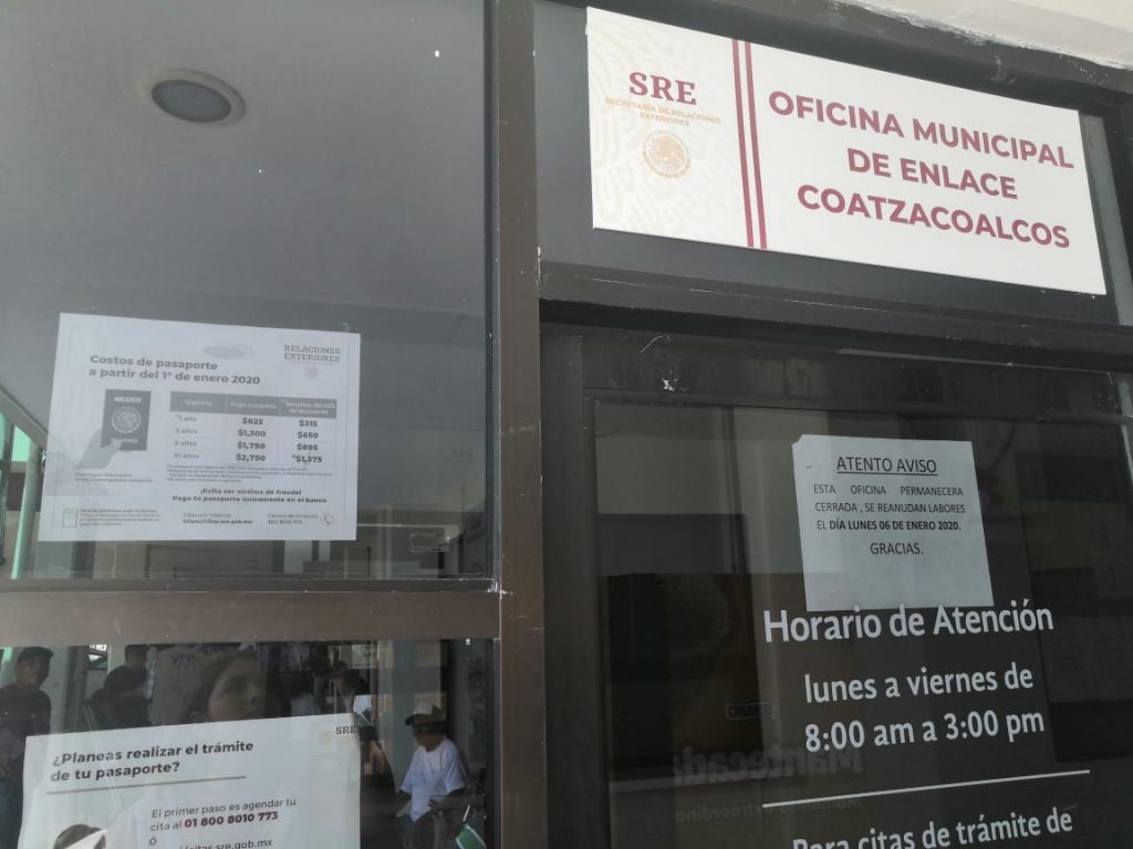 Coatzacoalcos, Ver.- A partir del 6 de enero que retomen las actividades en la oficina de Relaciones Exteriores en Coatzacoalcos, se aplicarán los nuevos precios de los pasaportes.