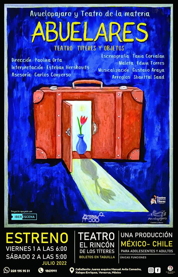 Xalapa, Ver.- Desde Santiago de Chile, en coproducción con México, llega a Xalapa la obra para jóvenes y adultos, “Abuelares” que se estrenará en El Rincón de los Títeres este 1 y 2 de julio.