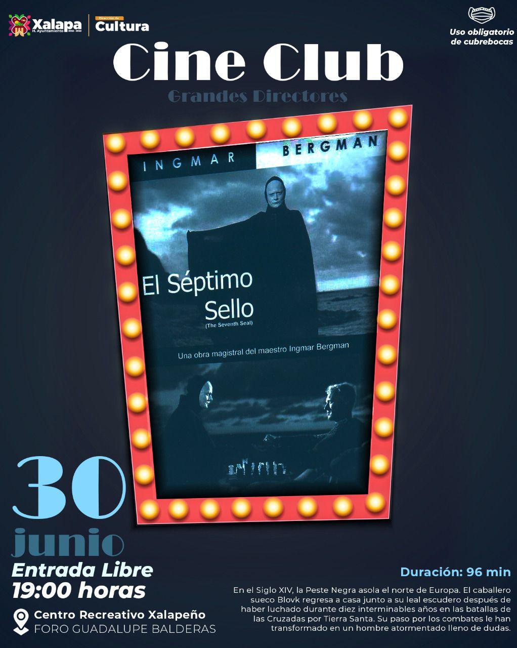 Ese día también se llevará a cabo un baile popular en la Plaza Xallitic, a las 18:00 horas, como parte del programa “Jueves de Xallitic”, mientras que a las 19:00 horas, en el Centro Recreativo Xalapeño (CRX) se realizará el cineclub con la proyección de la película “El séptimo sello”, del director Ingmar Bergman.