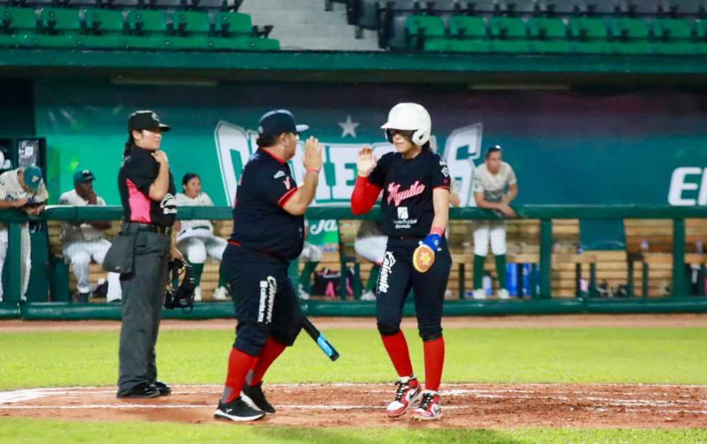 Las Olmecas aumentaron la ventaja en la sexta entrada con un ataque de dos carreras con producciones de Luis Hernández y Narda Andrade, 3-7 la pizarra.