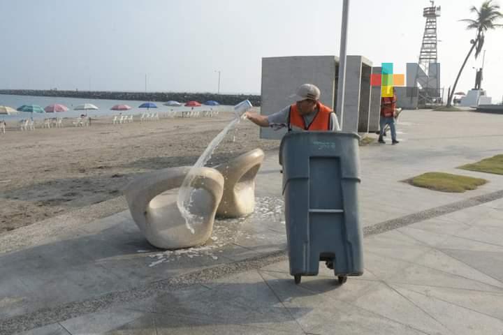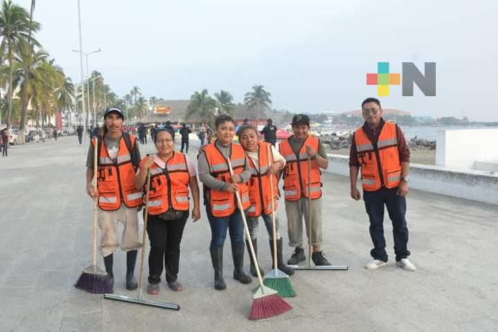 Operativo de barrido y limpieza tras inicio de Año Nuevo en Veracruz puerto