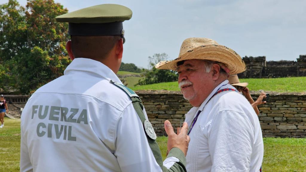 Papantla, Ver.- Como parte del Operativo de Seguridad Cumbre Tajín 2023, instrumentado por el Gobernador Cuitláhuac García Jiménez, elementos de Fuerza Civil adscritos a la SSP, mantienen recorridos de proximidad social en la Zona Arqueológica El Tajín.