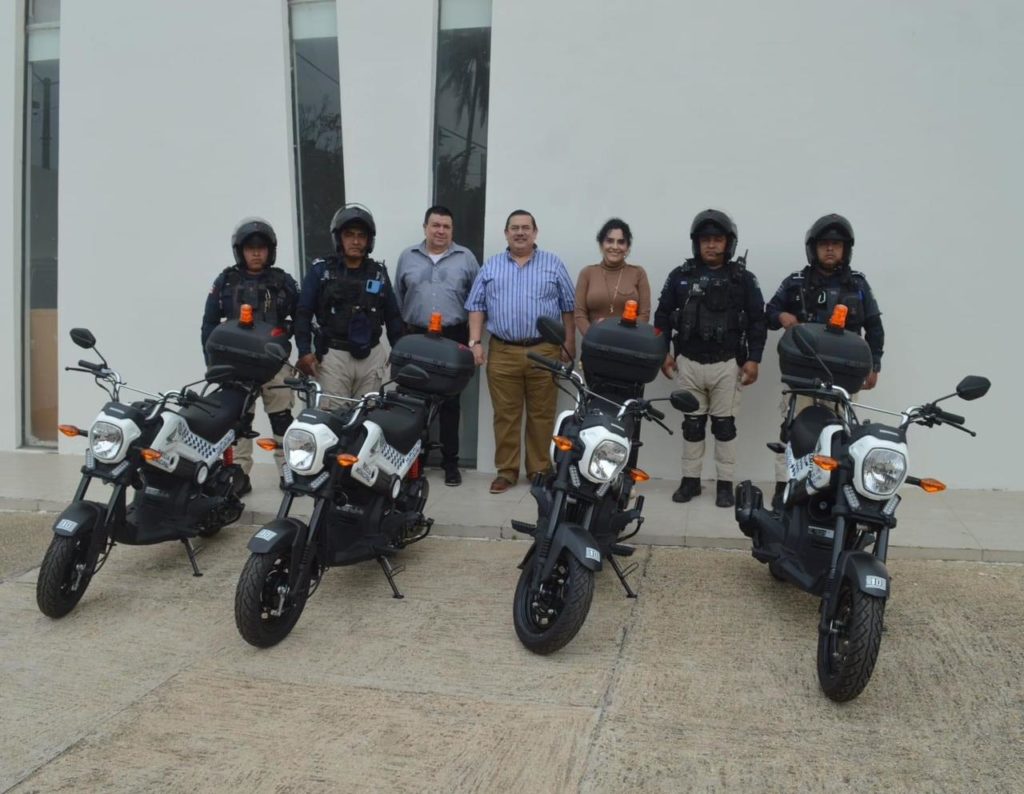 La organización “Comunidad Vecinos Petrolera” donó cuatro motopatrullas a la policía municipal de Coatzacoalcos.