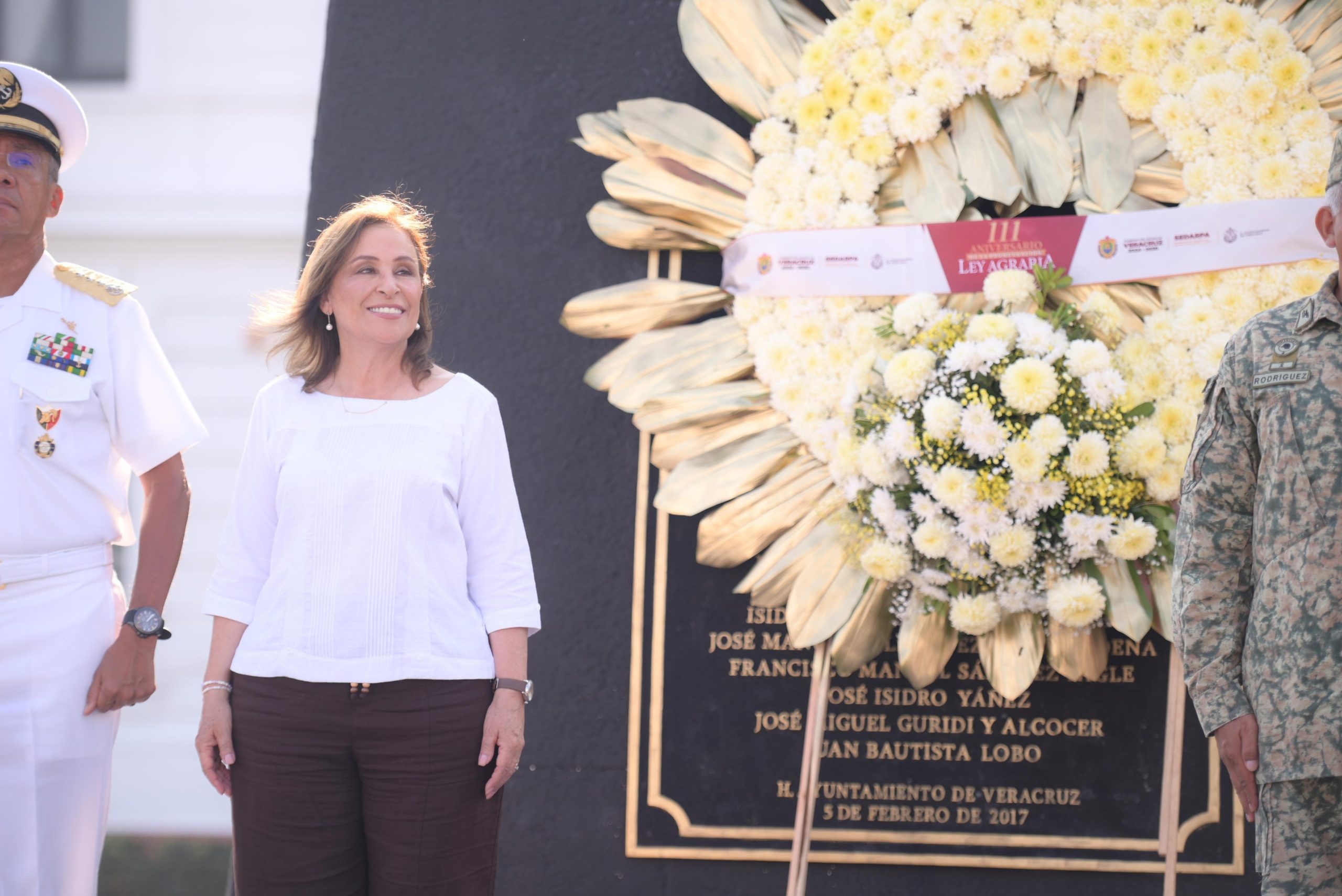 Veracruz, Ver.– Con una guardia de honor y el depósito de ofrenda floral ante el monumento a Venustiano Carranza, la gobernadora Rocío Nahle García, junto con autoridades de los tres órdenes de gobierno, conmemoró el 111 aniversario de la promulgación de la Ley Agraria.