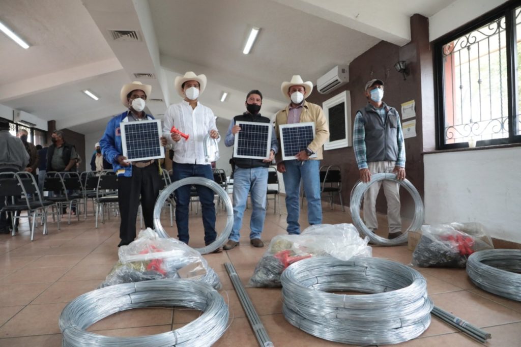 Así, los paquetes tecnológicos representan una inversión superior a los 8 millones de pesos y constan de cercos eléctricos, bebedores móviles de 500 y 850 litros, herramientas agrícolas, apícolas, avícolas, alta fructosa, paneles solares, indumentaria de protección, material para rehabilitación de galeras ganaderas, desbrozadoras y fumigadoras del programa Fomento a la Producción Agrícola para la Suficiencia Alimentaria.