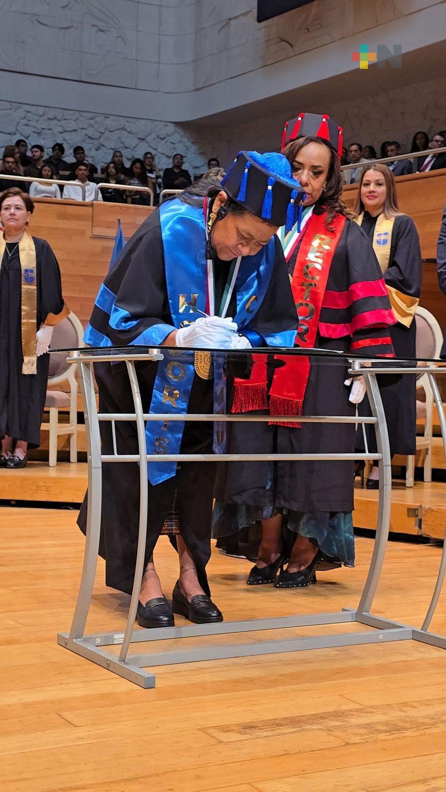El evento realizado por una escuela privada fue en el recinto cultural Tlaqná, en la ciudad de Xalapa, y reunió a distinguidas personalidades del ámbito académico, jurídico y social para rendir homenaje a la galardonada.