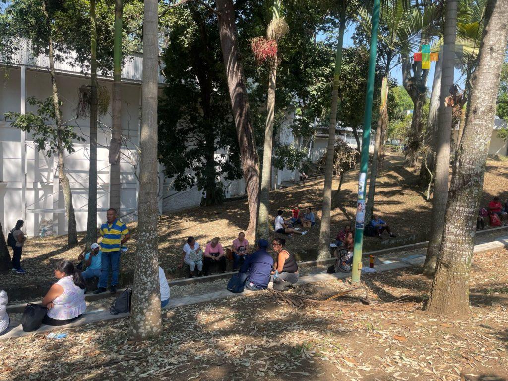 Antes de que los aspirantes ingresaran, les daban ánimos, una de ellas doña Erika Rostro Jiménez que viajó desde Martínez de la Torre.