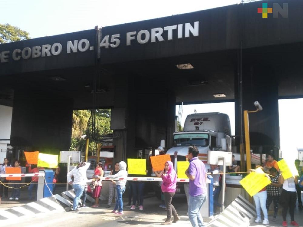 Fortín, Ver.- Padres de familia de la Escuela primaria Ignacio Aldama ubicada en Córdoba, mantienen tomada la mitad de la caseta 045 de Fortín, de la autopista Córdoba-Orizaba.
