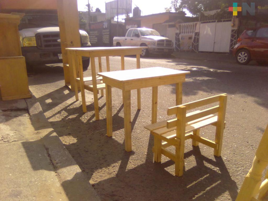 Veracruz, Ver.- Padres de familia de la ciudad de Veracruz han mostrado interés en comprar mesas pequeñas y sillas para que sus hijos puedan tener cómodamente clases en casa, ante la pandemia por el coronavirus.
