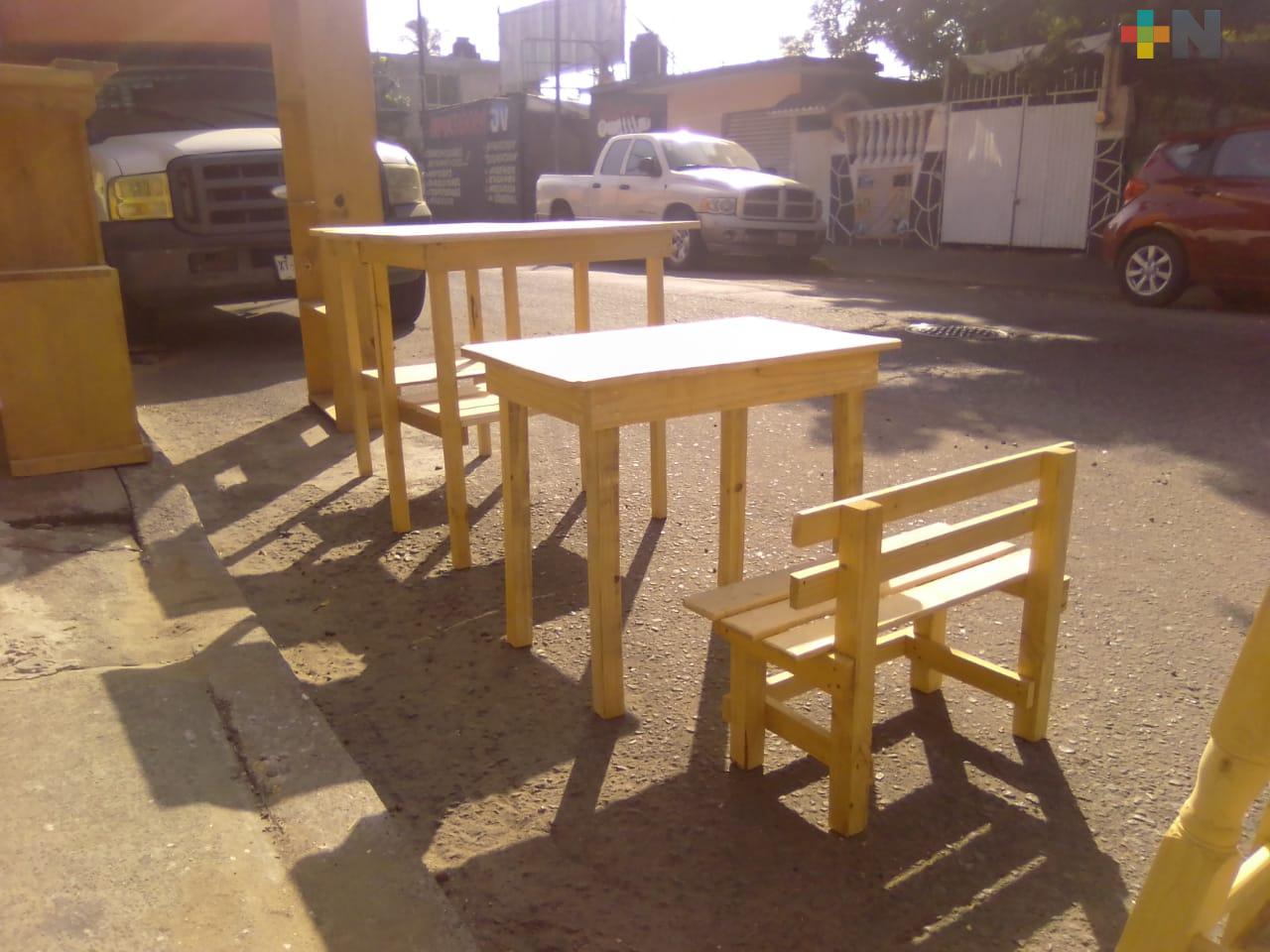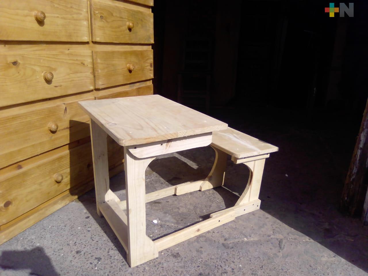Padres de familia se interesan por muebles de madera para las clases en casa