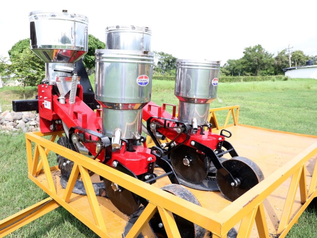 Son dos máquinas sembradoras y fertilizadoras, tres silocortadoras, cuatro remolques forrajeros de seis toneladas y uno plano de tres, así como mil 330 kilogramos de semilla de pasto y dos aspersores para tractor con capacidad de 500 litros cada uno; mientras que la inversión fue de 2 millones 502 mil 820 pesos.