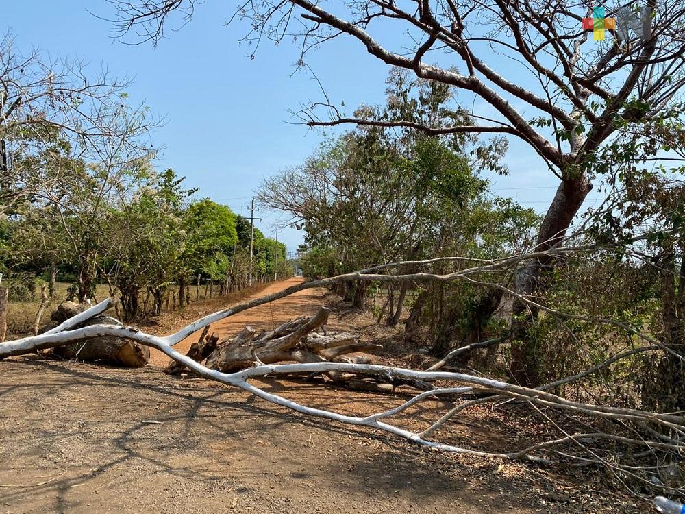 Mecayapan, Ver.- Pobladores de la comunidad Naranjos de este municipio, han colocado troncos y parte de árboles para evitar la entrada de vehículos y turistas de la región.