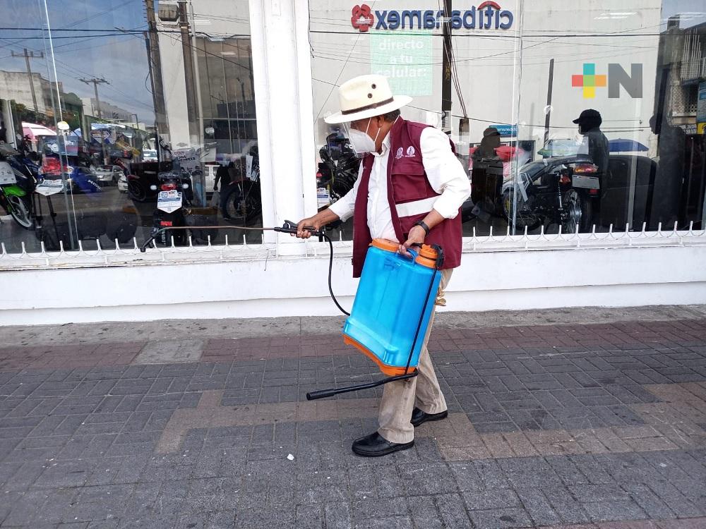 Para evitar tercera ola de covid, autoridades realizaron tareas de sanitización en centro de Coatzacoalcos
