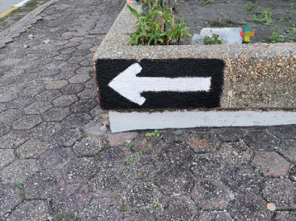 Para reducir accidentes, Tránsito de Coatzacoalcos pintó flechas de preferencias