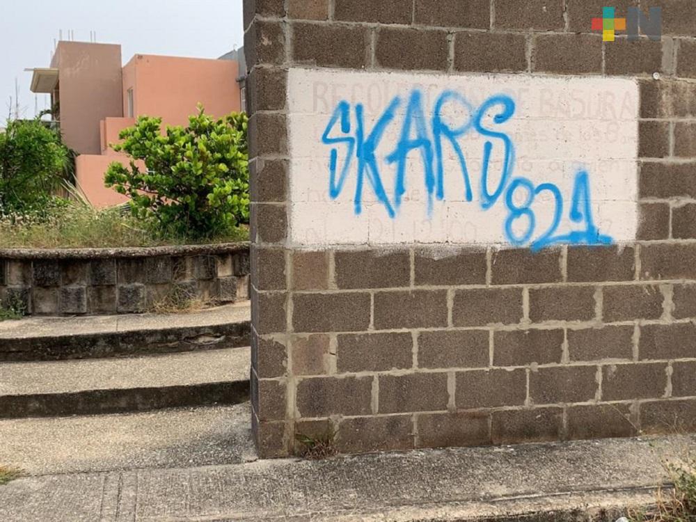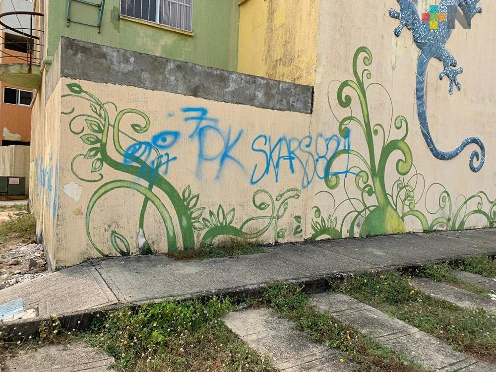 Paredes y autos grafiteados en fraccionamiento de Coatzacoalcos
