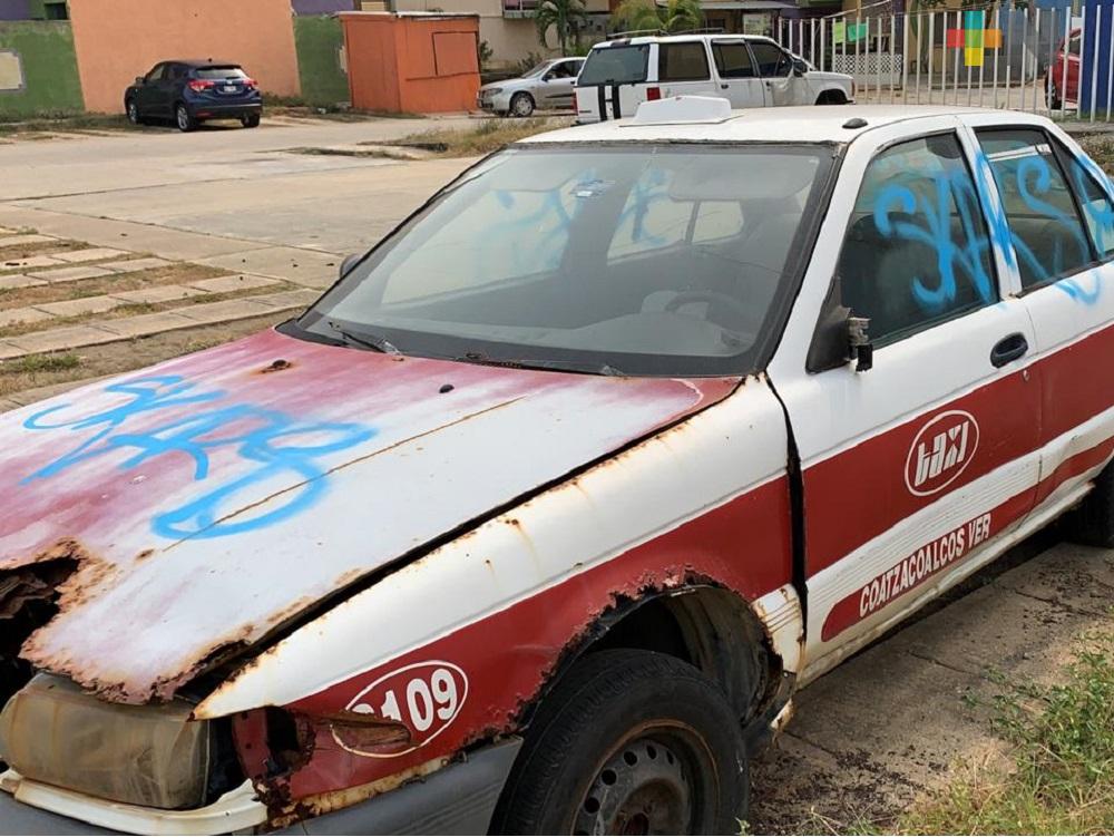 Además de paredes y bardas, un taxi abandonado y dos vehículos particulares fueron vandalizados, provocando daños en la pintura de los carros, y generando molestia y gastos a los propietarios.