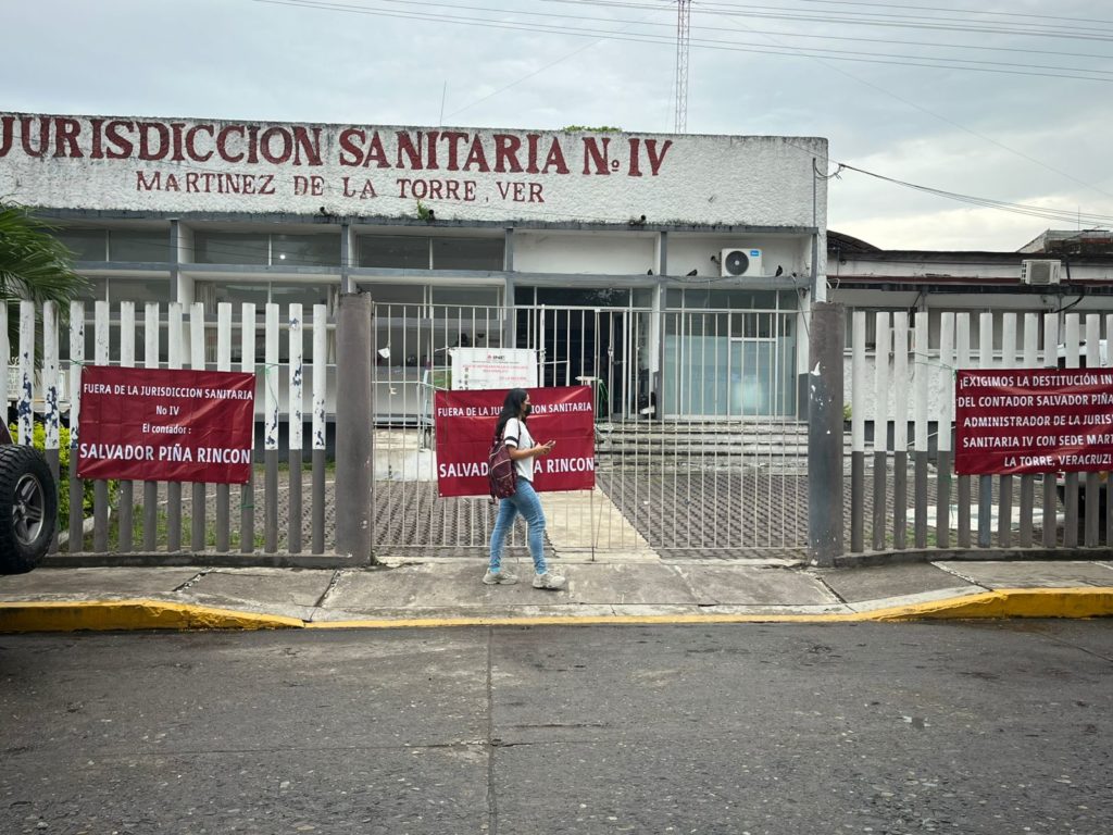 Martínez de la Torre, Ver.- Trabajadores y trabajadoras de la Jurisdicción Sanitaria número cuatro, con residencia en Martínez de la Torre, tomaron su centro de trabajo para exigir la destitución inmediata del director administrativo.