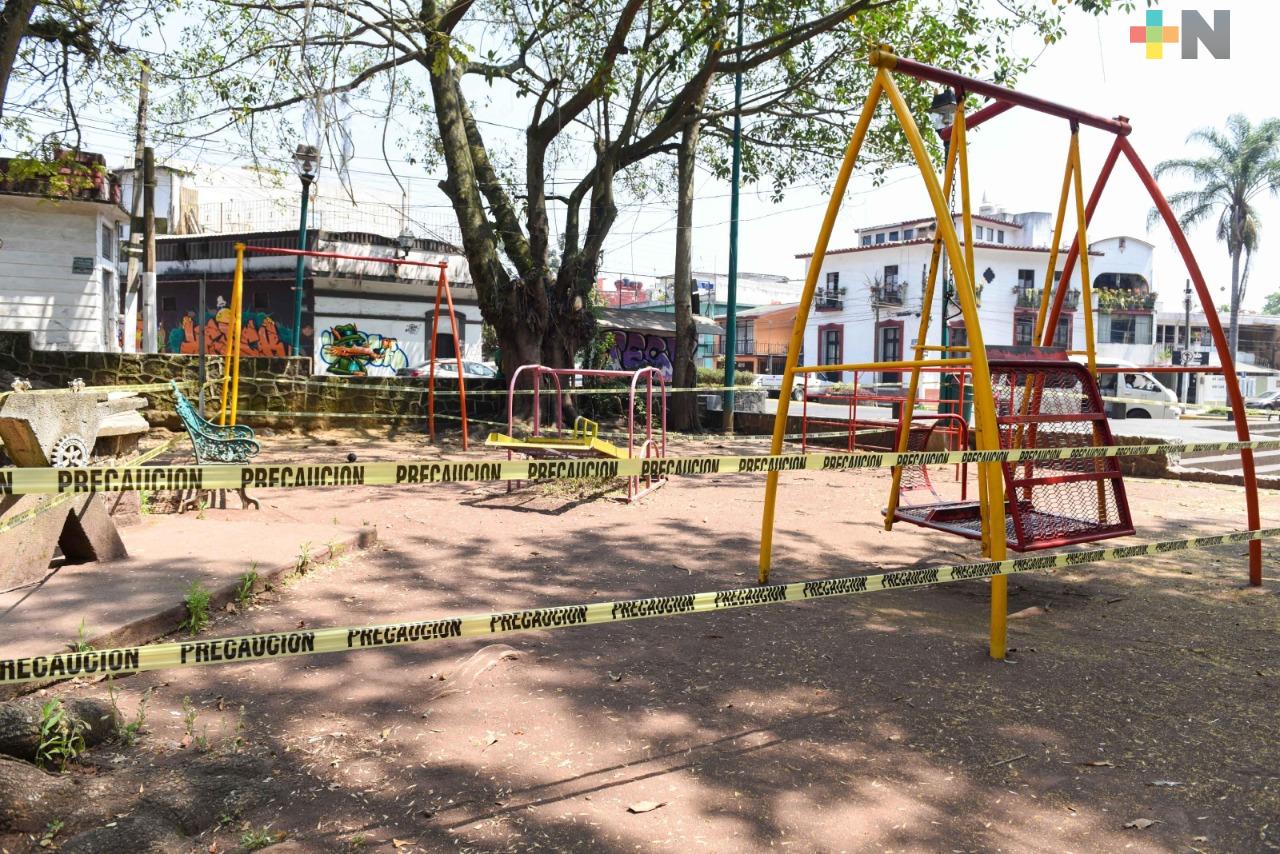Parques de Xalapa permanecen cerrados y juegos infantiles acordonados