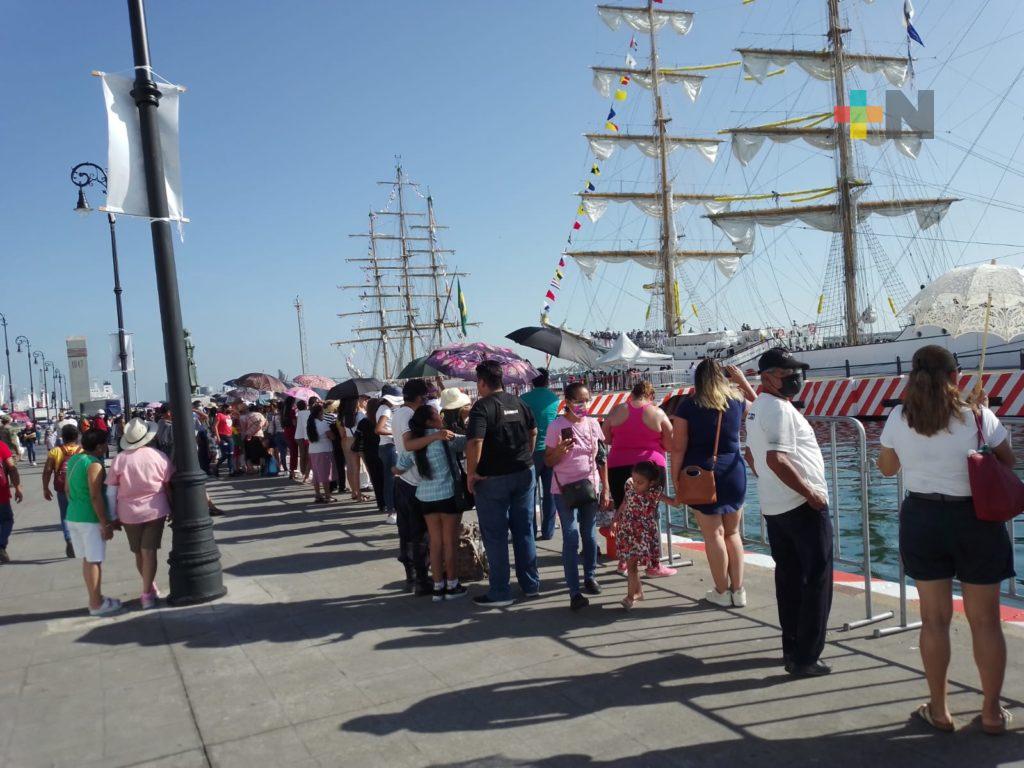 En el muelle de la T se reunieron turistas, para presenciar hasta el último momento la presencia de navíos como el velero Cuauhtémoc.
