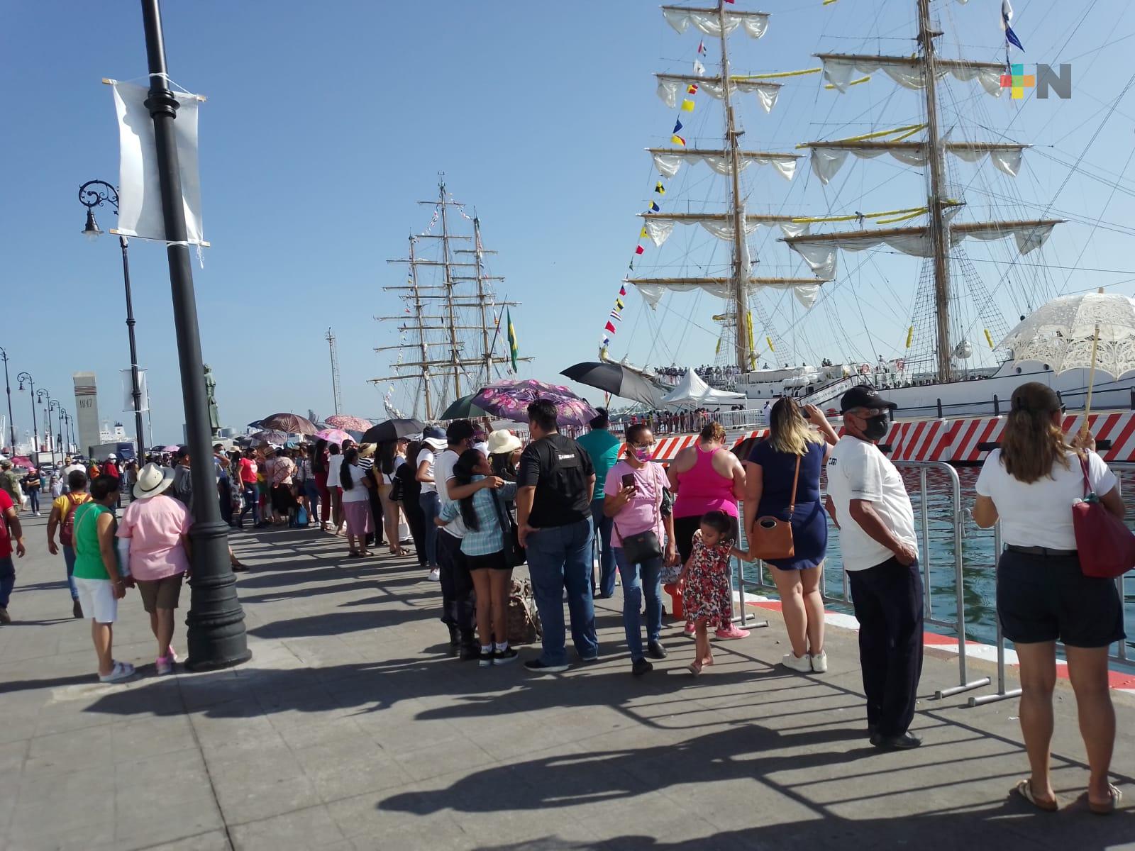 En el muelle de la T se reunieron turistas, para presenciar hasta el último momento la presencia de navíos como el velero Cuauhtémoc.