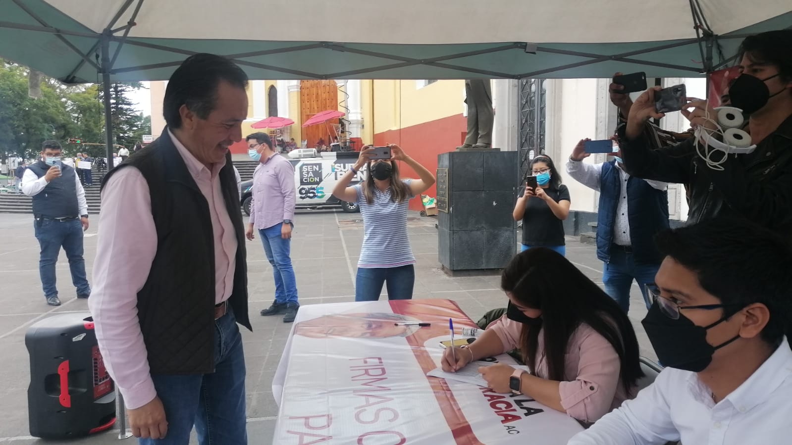 Xalapa, Ver.- El gobernador Cuitláhuac García Jiménez acudió este domingo a firmar la revocación de mandato en el módulo ubicado en Plaza Lerdo.