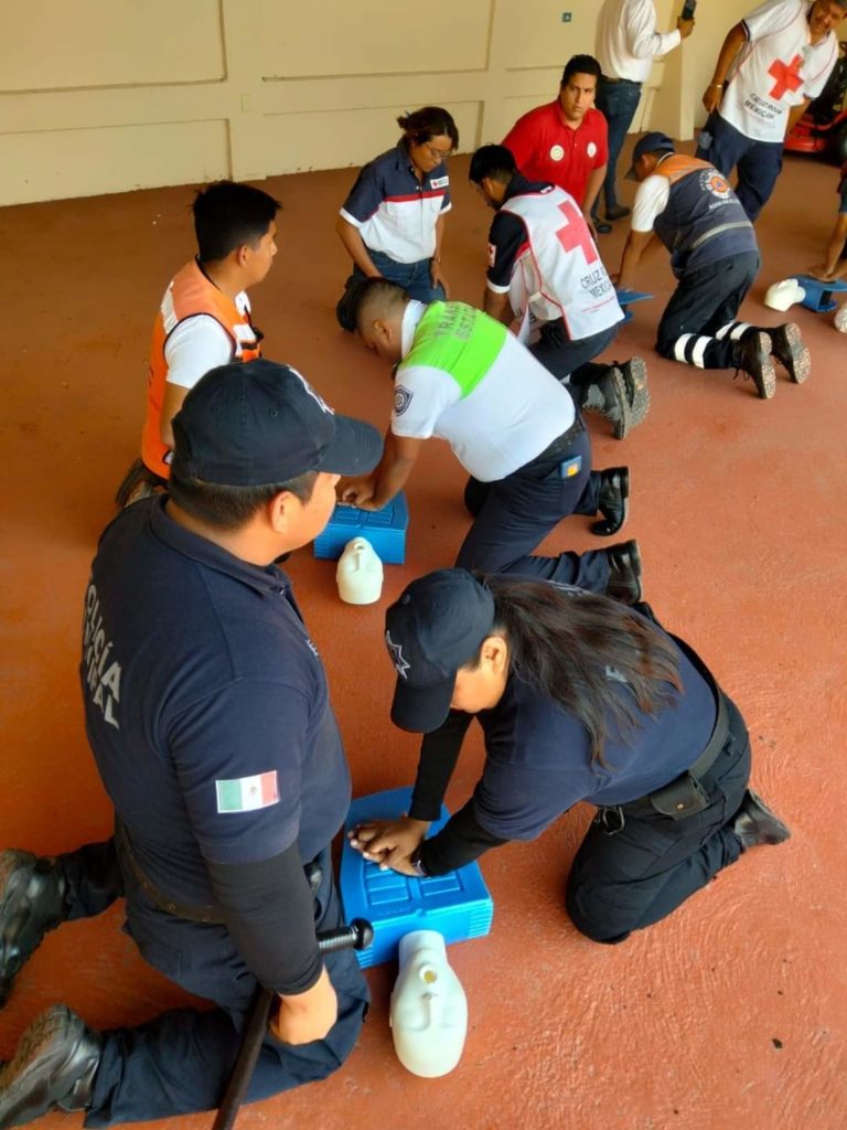 Xalapa, Ver.- La Secretaría de Seguridad Pública (SSP) a través de la Dirección General de Tránsito y Seguridad Vial (DGTSV) participó en el curso básico de primeros auxilios “6 acciones para salvar una vida”, organizado por la Cruz Roja Mexicana de Agua Dulce y el Comité Local de Ayuda Mutua (CLAM).
