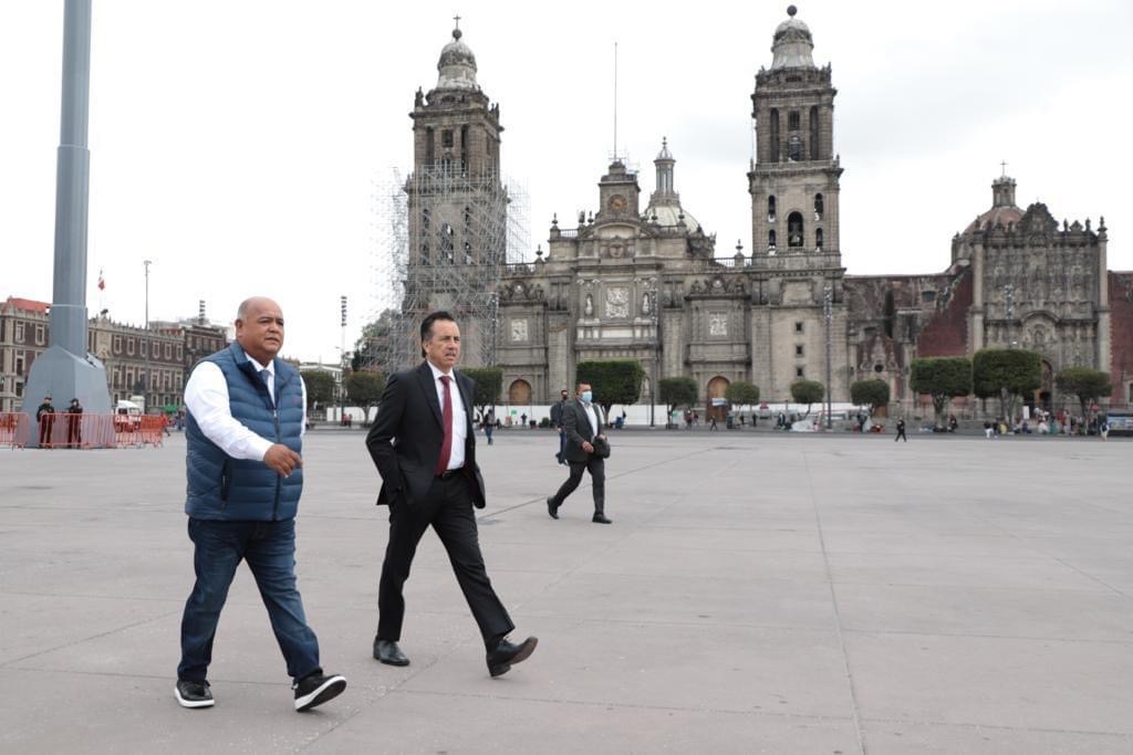 «Convocados por el Presidente Andrés Manuel López Obrador, acompañé al gobernador Cuitláhuac García Jiménez a Palacio Nacional, donde nos reunimos con sus homólogos de Chiapas, Tabasco y Oaxaca, con los secretarios de Gobernación, Adán Augusto López Hernández; Seguridad Pública y Participación Ciudadana, Rosa Icela Rodríguez Velázquez; Marina, Almirante José Rafael Ojeda Durán; y de la Defensa Nacional, Luis Crescencio Sandoval.